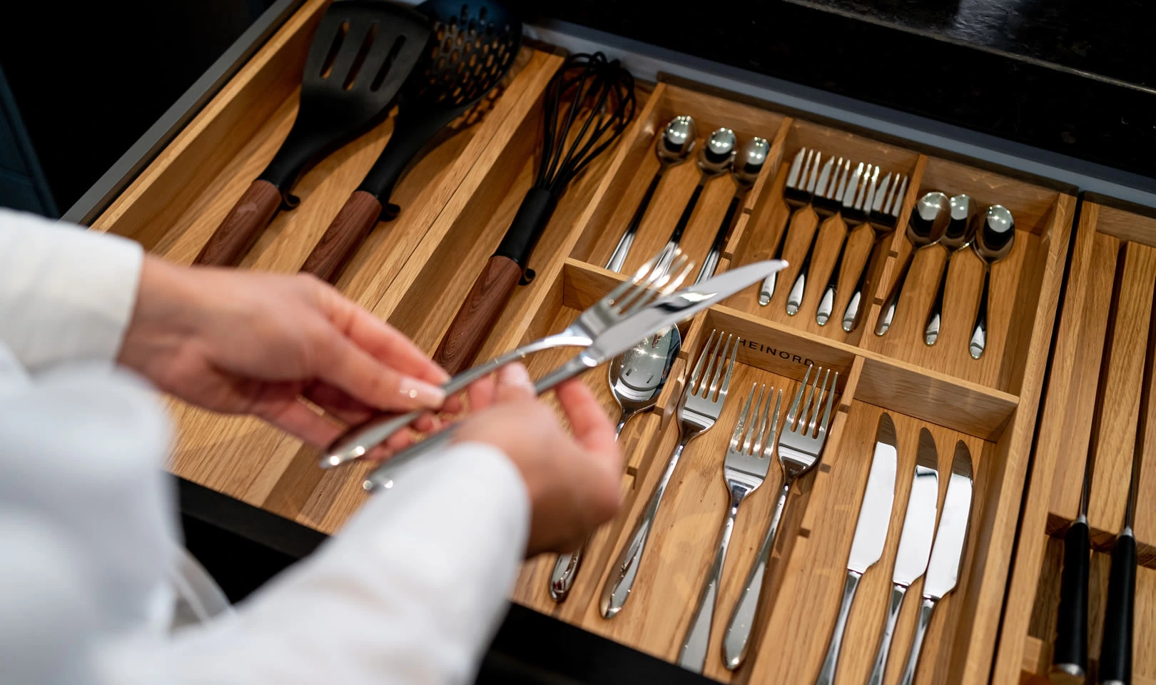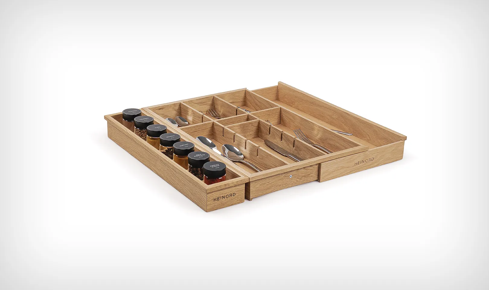 Jest wiele organizerów do szuflad kuchennych, ale naturalne, lite, dębowe drewno jest unikalnym materiałem w tym segmencie.