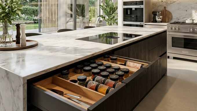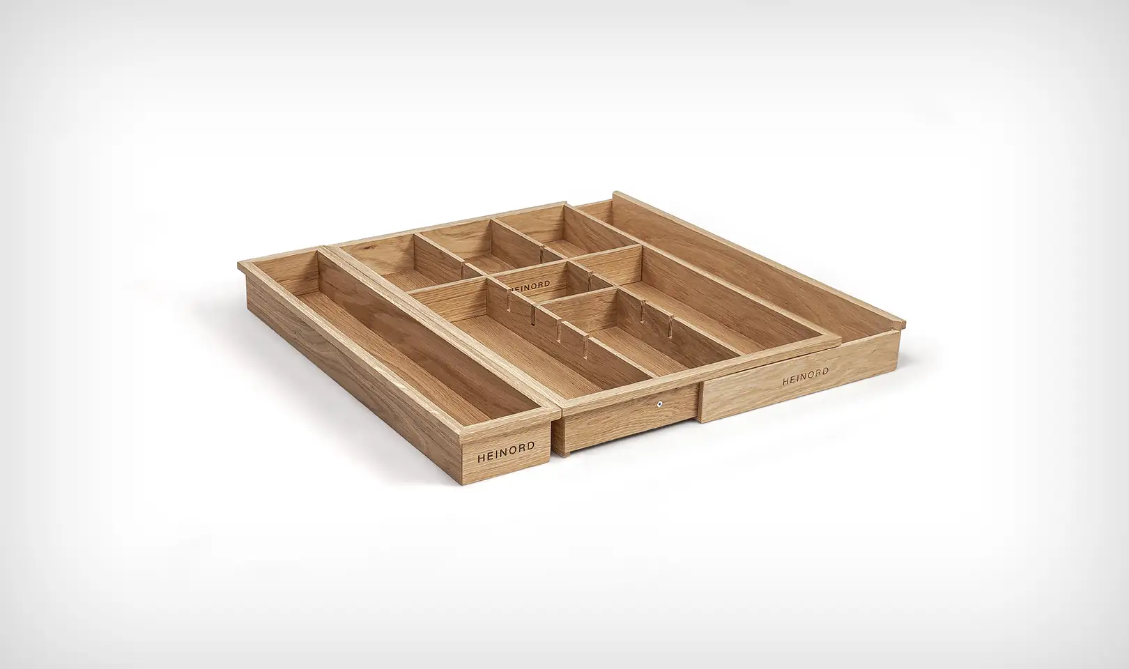 Jest wiele organizerów do szuflad kuchennych, ale naturalne, lite, dębowe drewno jest unikalnym materiałem w tym segmencie.